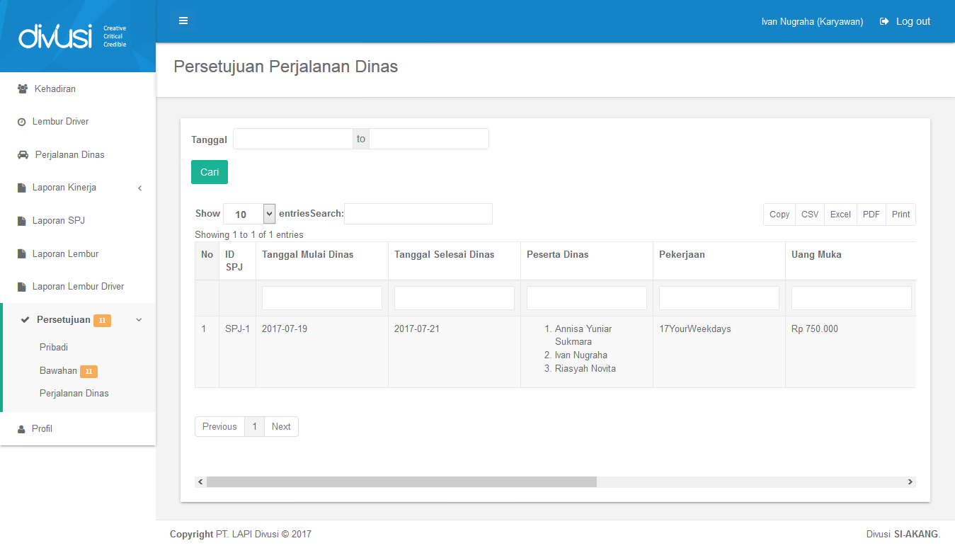 Memudahkan proses pengajuan dan persetujuan perjalanan dinas